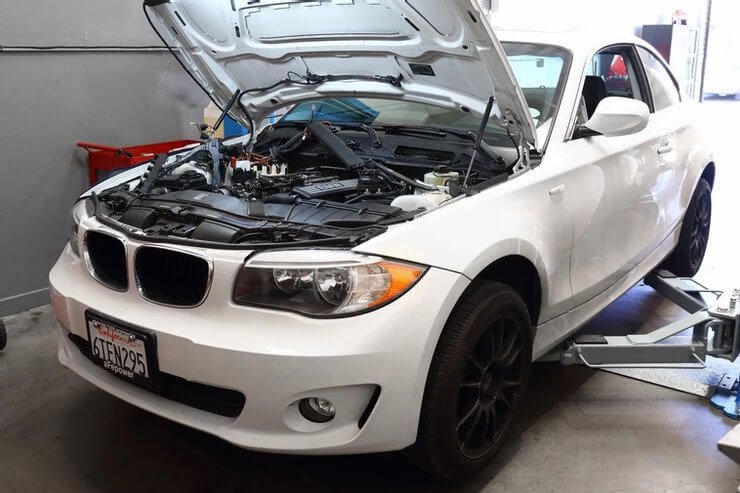 This 2012 BMW 128i with KW Suspension & AFE Power upgrades arrived at our shop for diagnostics and repairs. With 52k miles, the valve cover and oil filter housing gaskets started to leak and needed to be replaced. The customer also stated that engine is misfiring but without the Check Engine indicator light on. We scanned the control module and found a fault code for a misfire in cylinder number 5. The customer approved to replace the coil and all 6 spark plugs which solved the issue.