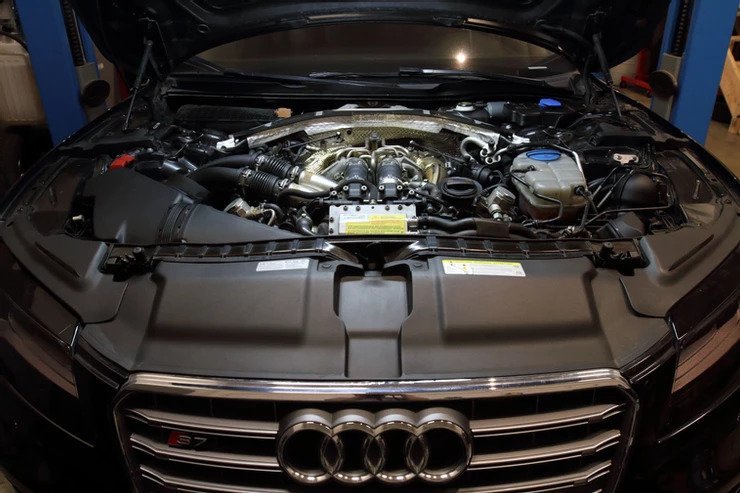 This 2013 Audi S7 was experiencing a rough idle with the Check Engine indicator light on. We performed a diagnosis and determined that the culprit was a faulty oil separator unit. A common failure on these 4.0L V8 twin turbo engines, it created a vacuum leak and caused the engine to misfire.