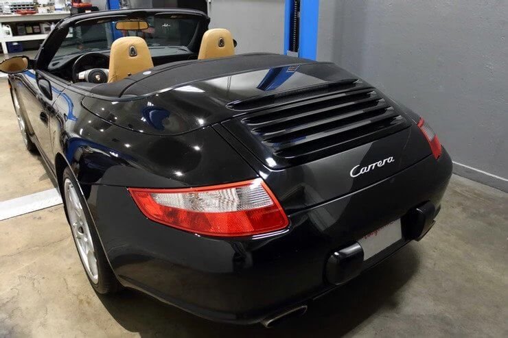 Our new client recently purchased a clean 2006 Porsche 911 Carrera 3.6L Cab with 23,639 miles. He brought it to us for a multi-point inspection to make sure that vehicle is up to date on all maintenance services and fix a few minor issues. The combined switch module on the console was inoperable. None of the functions such as the spoiler and sport mode buttons work. We removed and replaced the unit after we discovered that there was liquid damage with traces of a coffee spill. The passenger side tailight was cracked and seat motor was inoperable so both were replaced as well. To keep the car in good health for years to come, we completed all the maintenance services that have either exceeded the mileage or time specified by the manufacturer.