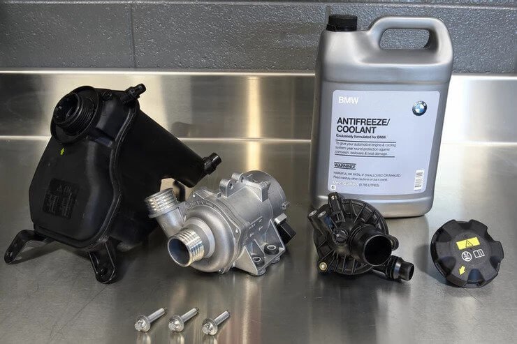 With 126,642 Miles, this 2009 BMW 328i was overheating and we found fault codes for coolant pump volume. This indicated that electric coolant pump was failing and running at a speed lower than desired by the engine management system. We replaced the waterpump, thermostat, expansion tank, and cap, along with genuine BMW coolant.